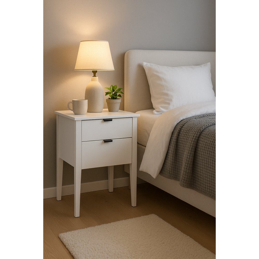 Sängbord med två lådor vit - Sunderland