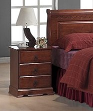 Ett härligt sängbord med en elegant design. Bordet är tillverkat av MDF med ett mycket vackert fanér med utförande av antik körsbärs trä. Rustad med 3 lådor för praktisk förvaring.