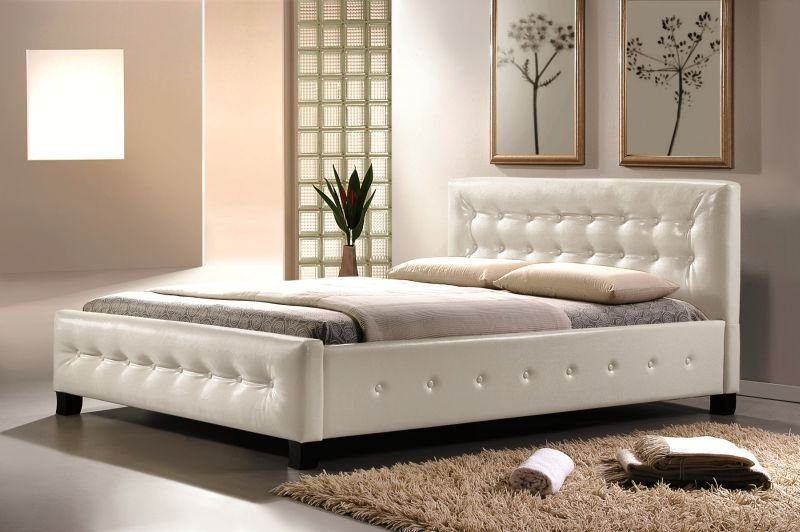 En snygg sängram med en lyxig design. Ramen är tillverkad i trä med en mycket vacker och behaglig klädsel i konstläder.