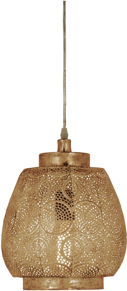 Taklampa i mässingsfärgad metall. Lätt att hänga upp i taket.