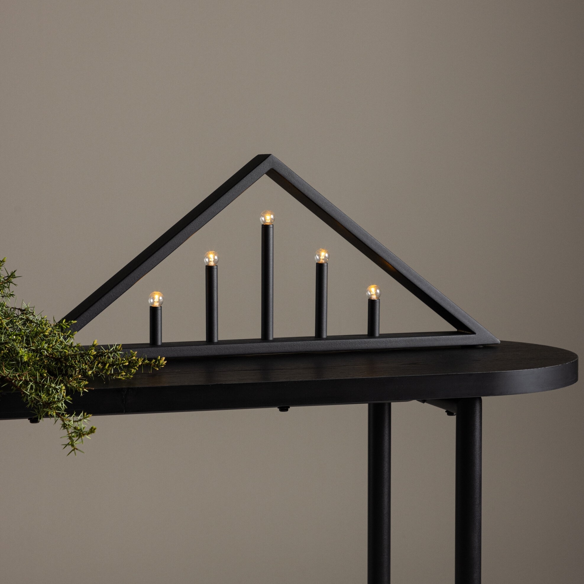 Ge ditt hem en touch av elegant enkelhet med Sankt Anton adventsljusstake. Tillverkad i svart metall, är denna adventsljusstake en sofistikerad och modern tolkning av den klassiska traditionen. Med plats för fem lampor sprider den en varm och inbjudande glöd genom ditt rum när du räknar ner dagarna fram till jul. Den svarta metallen ger en elegant kontrast till den mjuka belysningen och skapar en stämningsfull atmosfär i ditt hem. Placera den på ditt matsalsbord, på en hylla eller som en central del av din juldekoration för att lysa upp din väntan på julen. Med Sankt Anton adventsljusstake kan du njuta av en tidlös tradition med en modern twist. Låt den bli en del av din jultradition och skapa minnen som varar år efter år.
