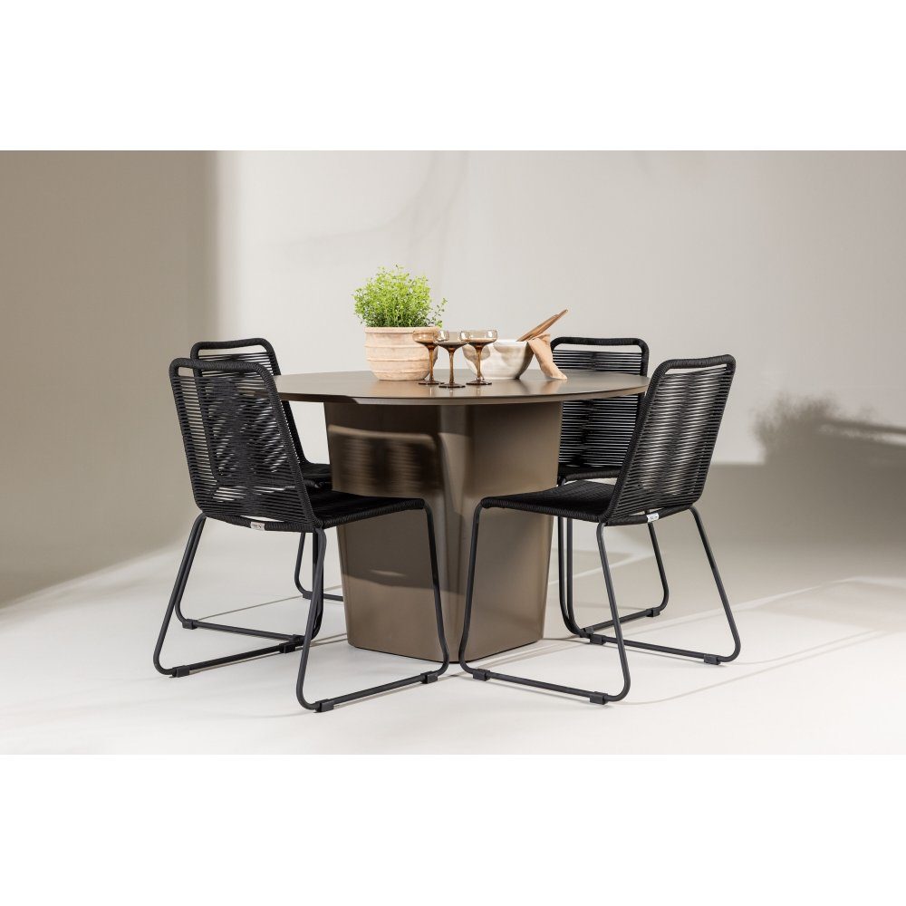 Santa Fe rund matgrupp med 4 st Lindos stolar - Brun/svart: