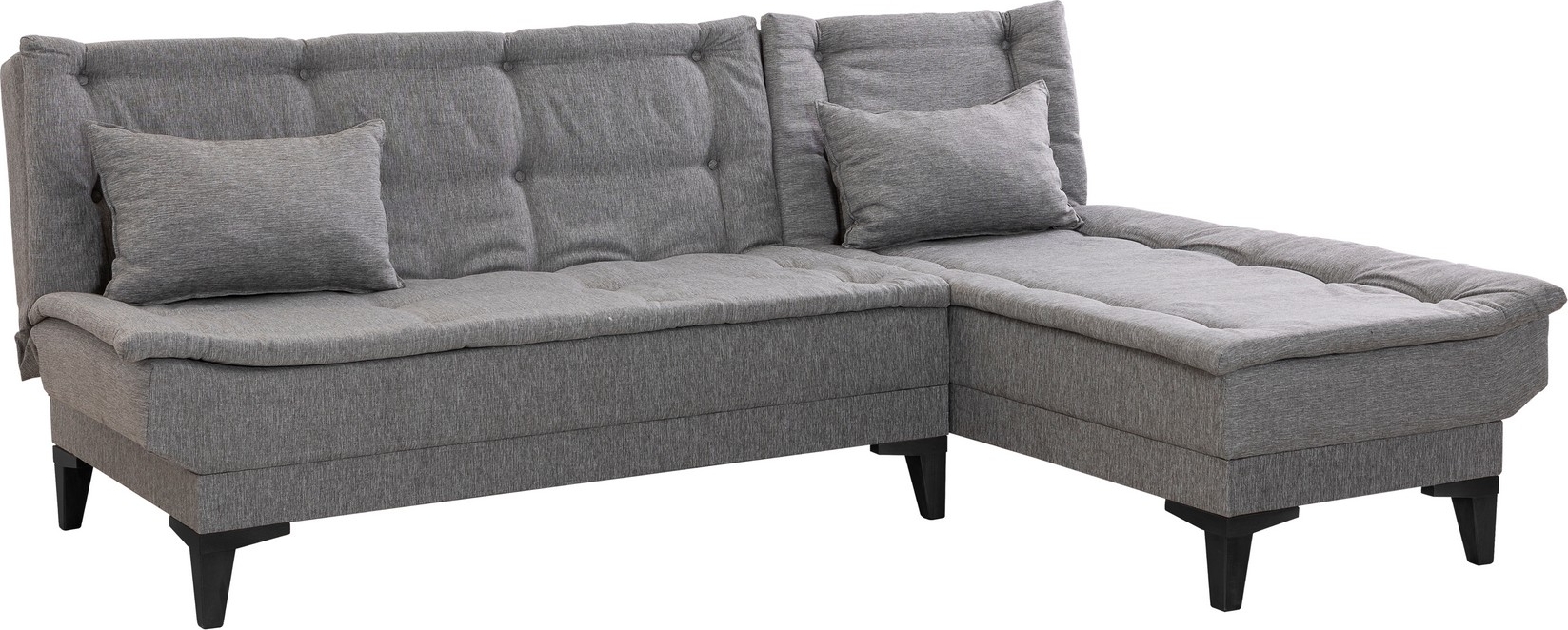 Divanbäddsoffa av avenbok. Klädsel av polyester och ben av plast.