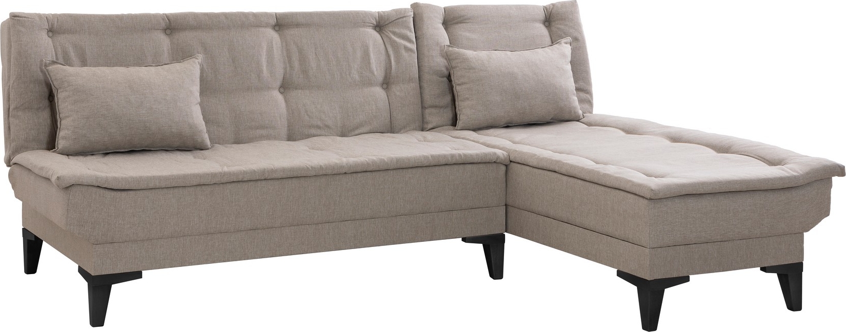 Divanbäddsoffa av avenbok. Klädsel av polyester och ben av plast.