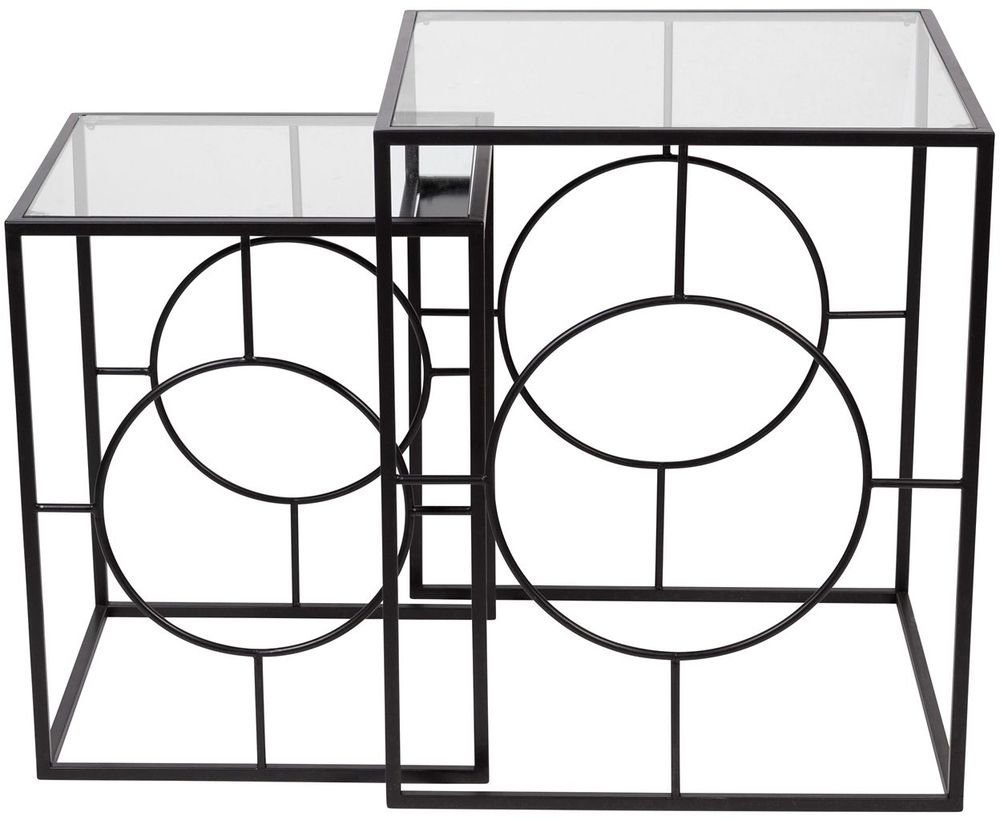 Ett snyggt par satsbord med en modern design. Underredet är tillverkat i svart metall och bordsskivorna är av klarglas. Kommer i set om två.