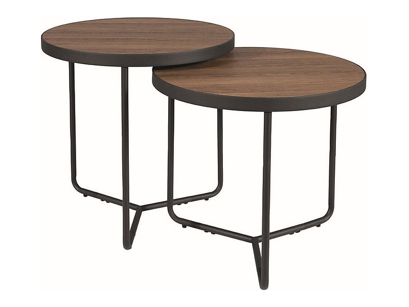 Ett par fina satsbord med en vintage design. Borden är tillverkade i svart pulverlackad metall med toppskivor i valnötsfanèr.