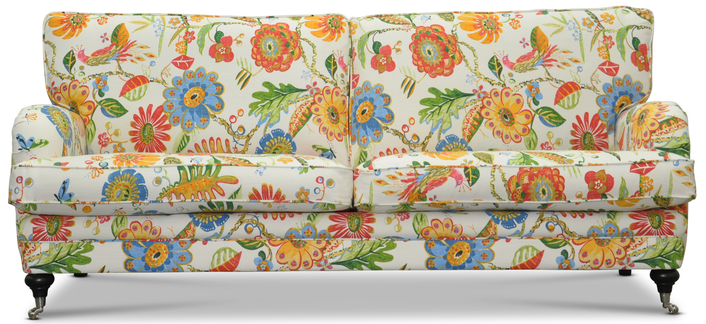 Soffan finns i en rad olika färger på det blommiga tyget Havanna. Tyget är 100% bomull.