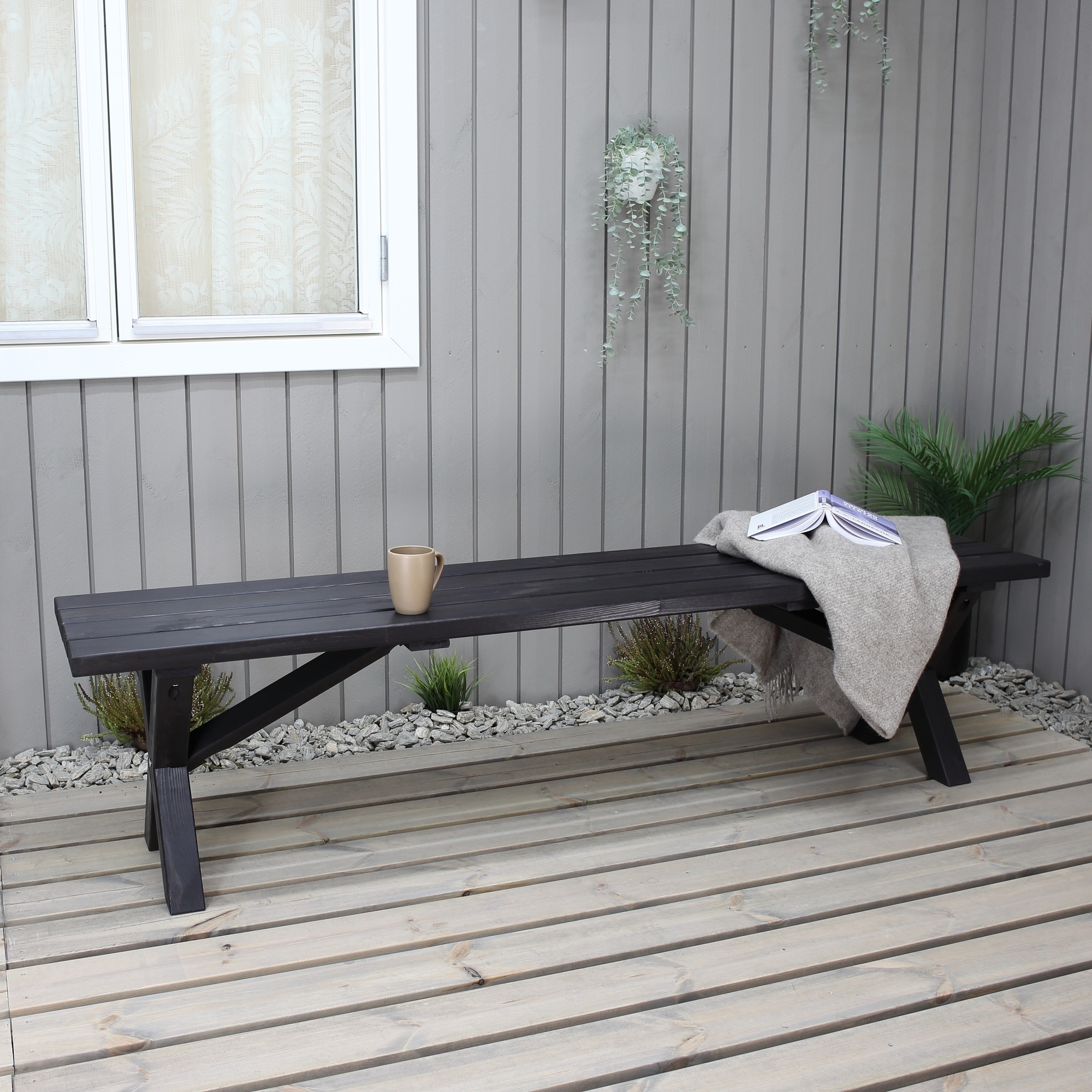 Bänk från Skånska Möbelhuset i svartlaserad furu med kryssben. Stilren och passar in i de flesta miljöer. Komplettera gärna med något av borden i möbelserien Scottsdale.