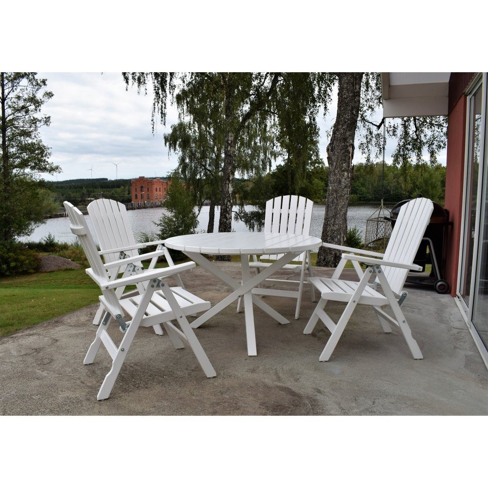 Scottsdale utegrupp bord Ø112 cm inkl 4 st Kungshamn positionsstolar - Vit