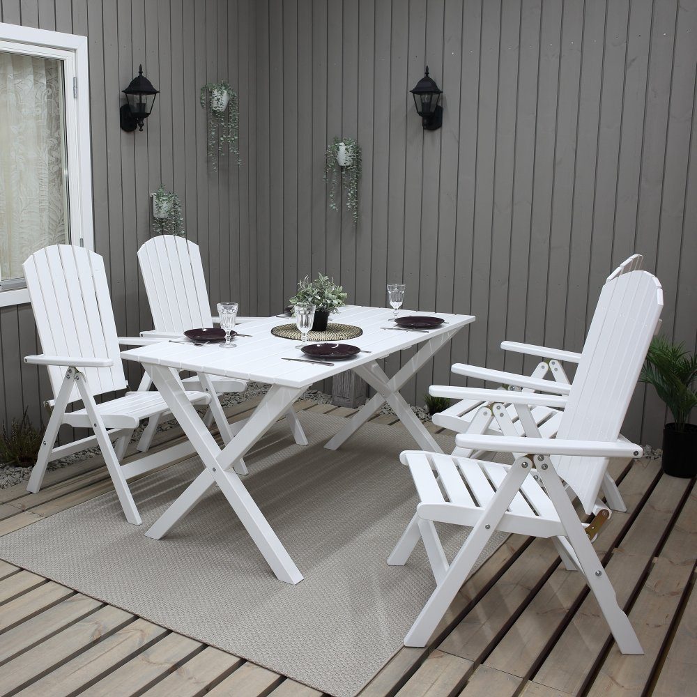 Scottsdale utegrupp bord 150 cm inkl 4 st Kungshamn positionsstolar - Vit