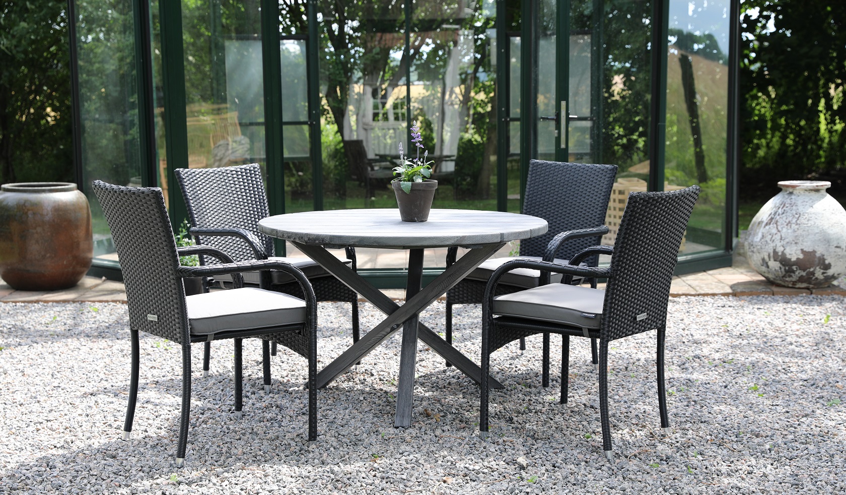 Scottsdale utematgrupp runt bord med 4 st Orissa karmstolar - Svart/grå
