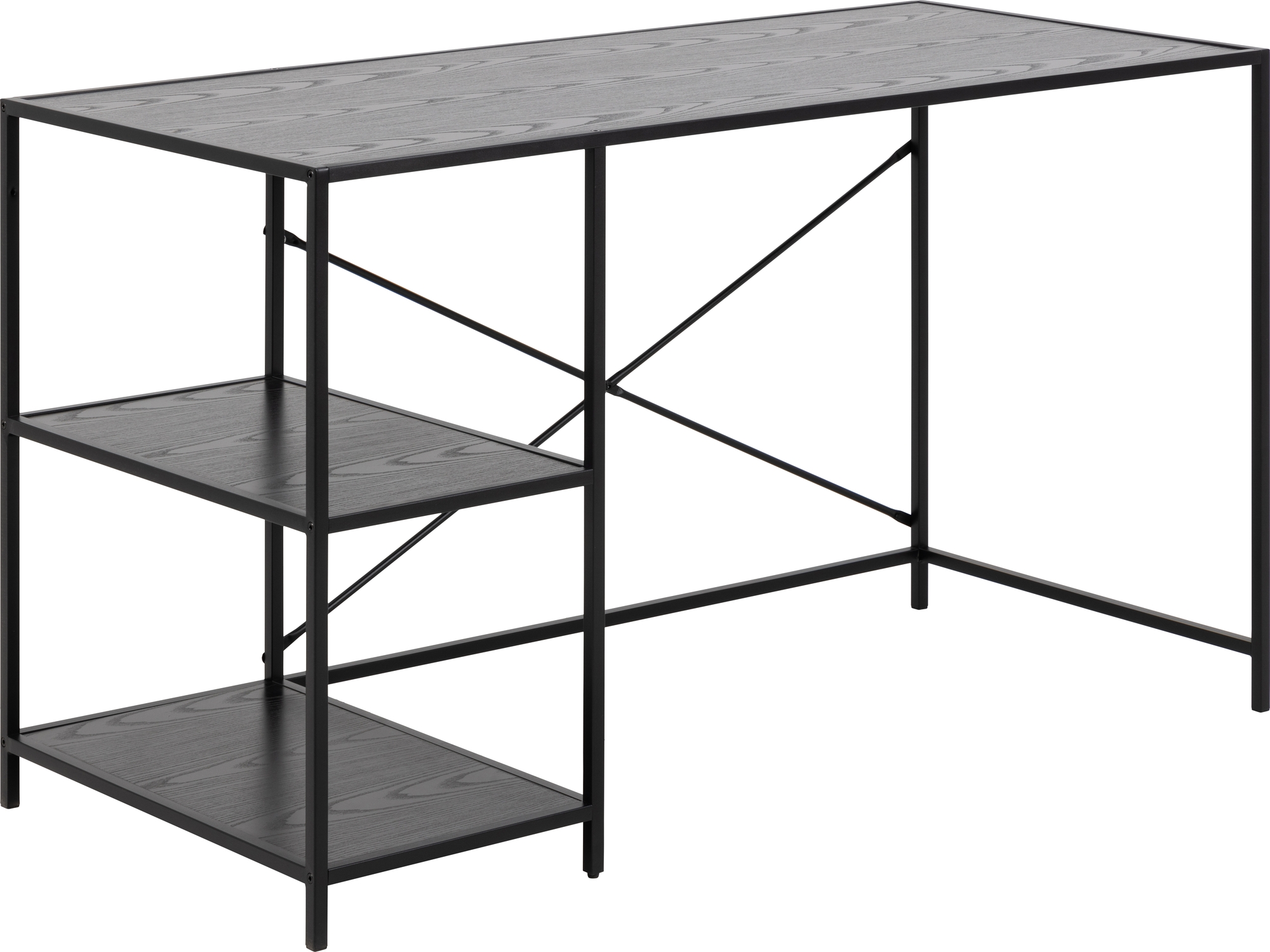 Skrivbord med ben av pulverlackerad metall. Bordsskiva av melamin och MDF.