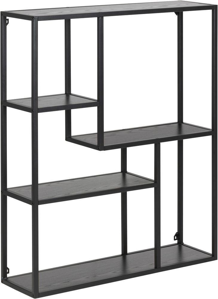 Bokhylla med stomme tillverkad i svart pulverlackerad metall och hyllplan av melamin med ask utförande. Monteras lätt på plats.