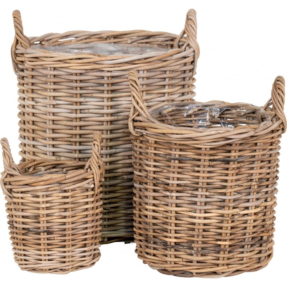 Korgset av kubu rotting med plastbeklädd insida. Set med 3 st. Levereras monterad.