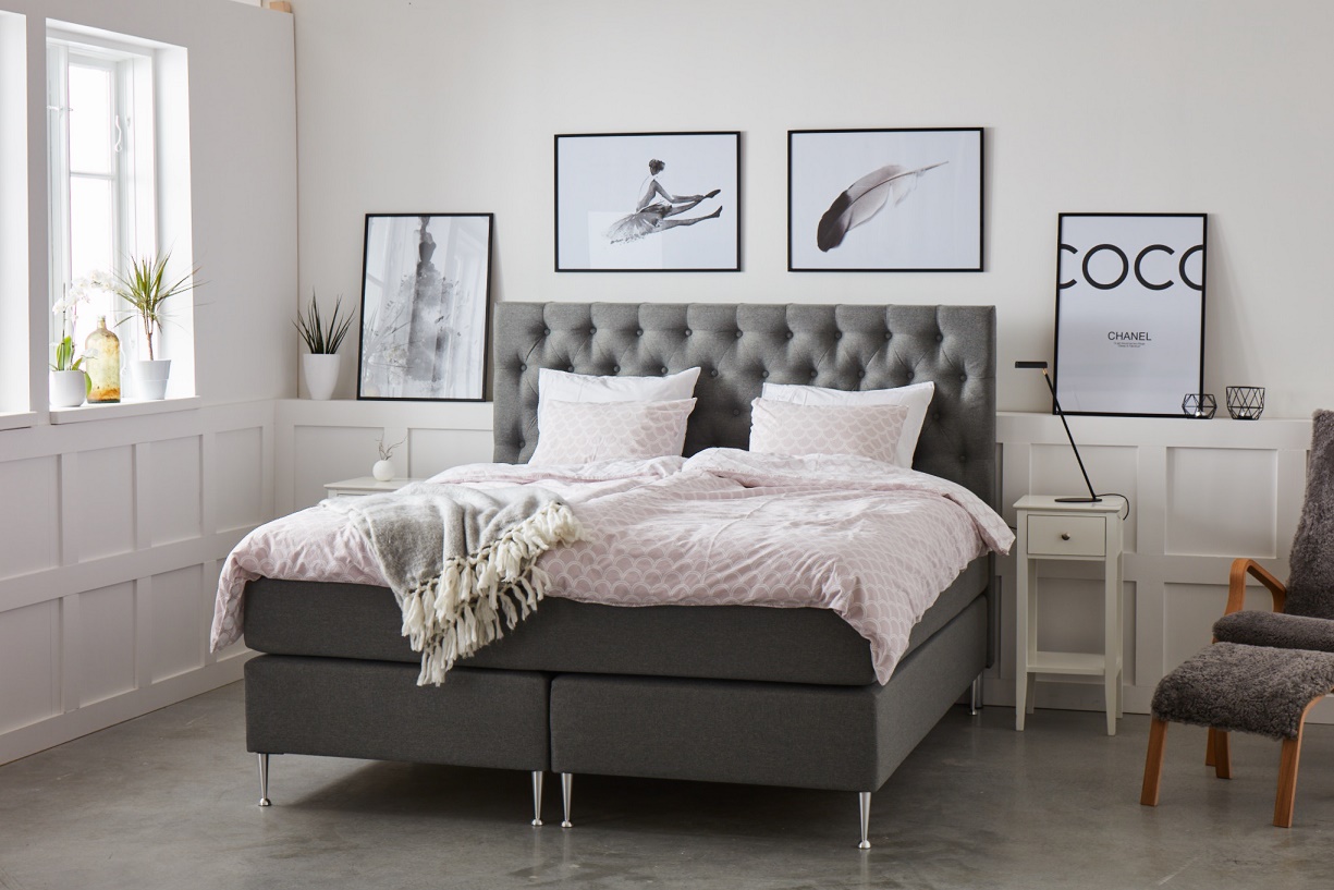 Sensation sänggavel är en välbyggd sänggavel med djuphäftade knappar i valfritt tyg/ecoläder!