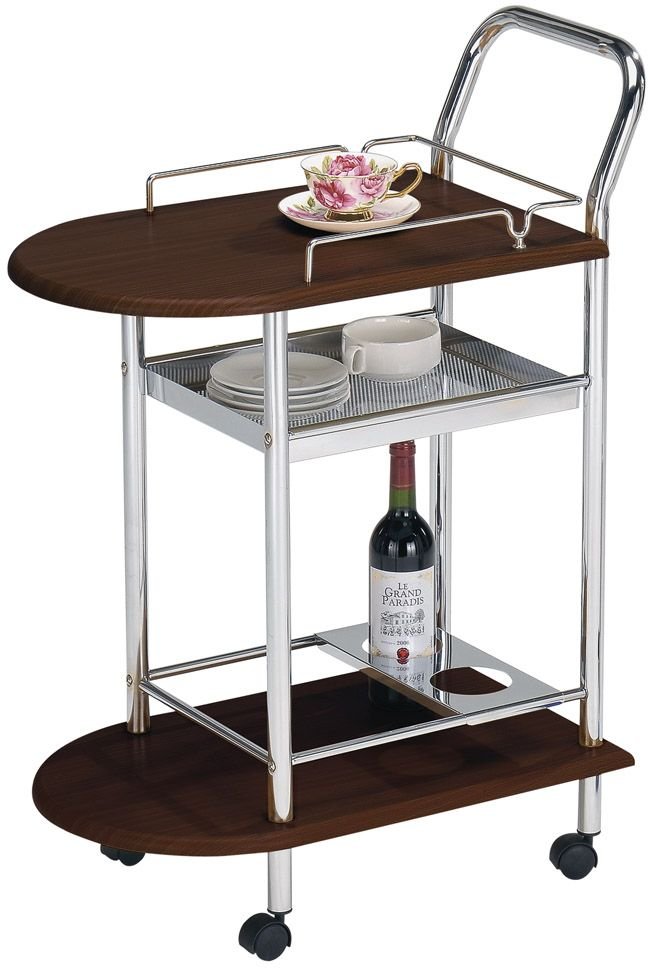 En härlig serveringsvagn med en elegant design. Stommen är tillverkad av kromad metall och hyllplanen är av MDF med ett mycket vackert wenge utförande. Rustad med hjul undertill för lätt förflyttning.