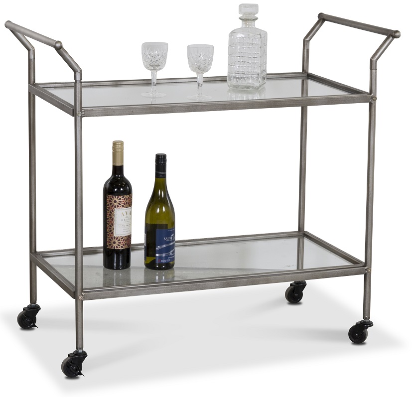 En klassisk mat- och serveringsvagn i stål med glashyllor. Passa på att servera gästerna med stil.