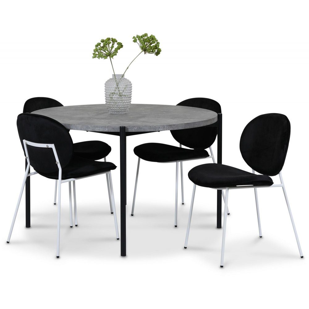 Shanghai matgrupp Ø120 cm inkl. 4 st Palle stolar i sammet - Cementimitation