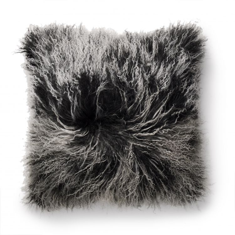 Kuddfodral i långhårigt lockigt fårskinn från Tibet.