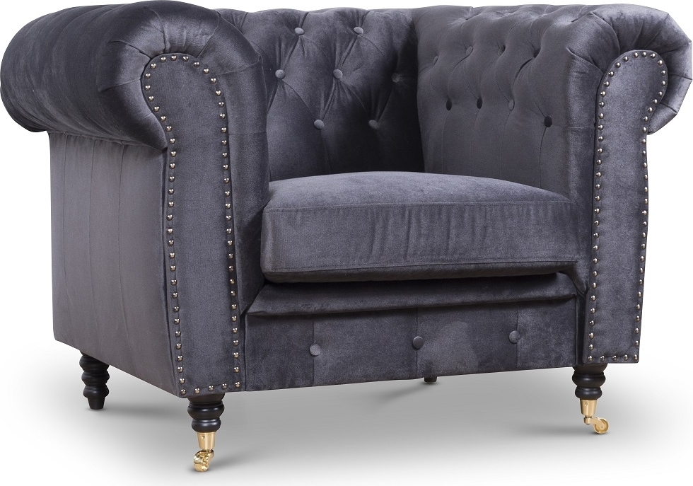 Sheffield Chesterfield Fåtölj - Grå (Sammet)