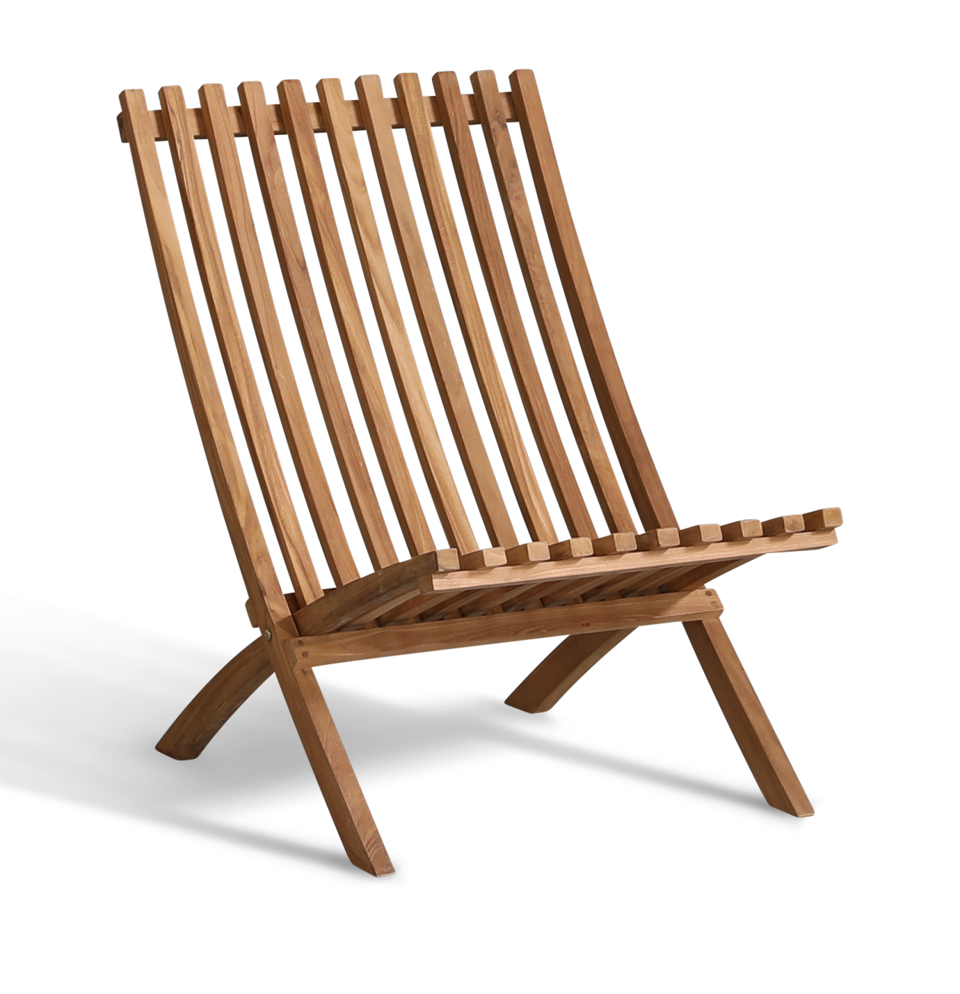 Shelby fåtölj till uteplatsen, tillverkad av massiv teak. Komplettera gärna med sittdyna. Fäll ihop fåtöljen till en platt stol när den inte används.