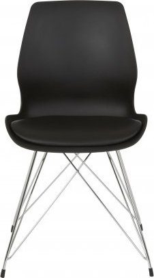 Moderna matstolar från vår Shello serie. Svart formgjuten plastsits med dyna i svart PU. kromade metallben för ett modernt utseende.