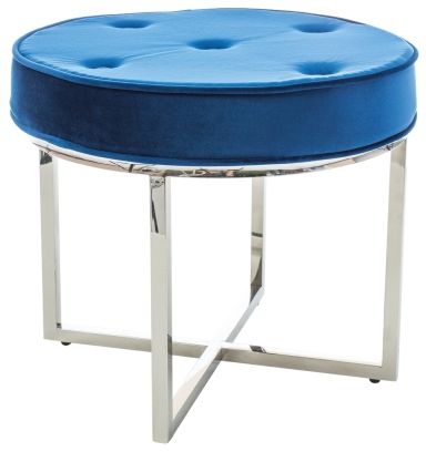 En härlig puff med en stilren design. Puffen är klädd med ett mycket behagligt sammet tyg för maximal lyx och komfort. Själva underredet är tillverkat av kromad metall.
