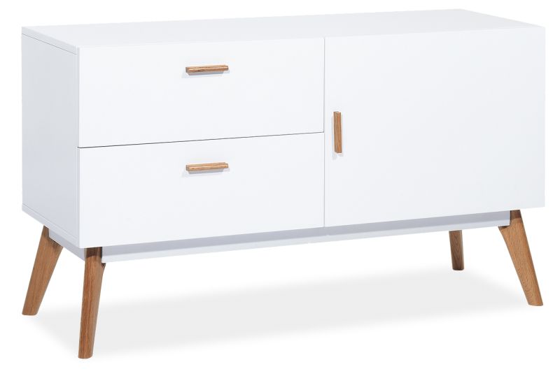 Ett härligt sideboard med en modern design. Bänken är tillverkad av vitlackerad MDF och benen är av oljad ek.
