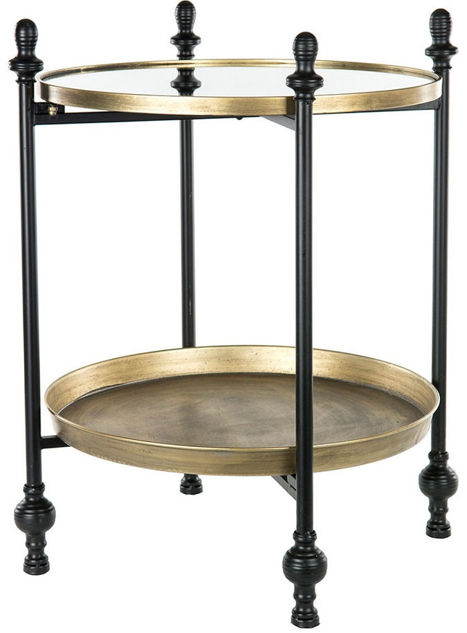 Ett vackert sidobord med löstagbar spegelbricka. Utförande i antik mässing med svart stativ.