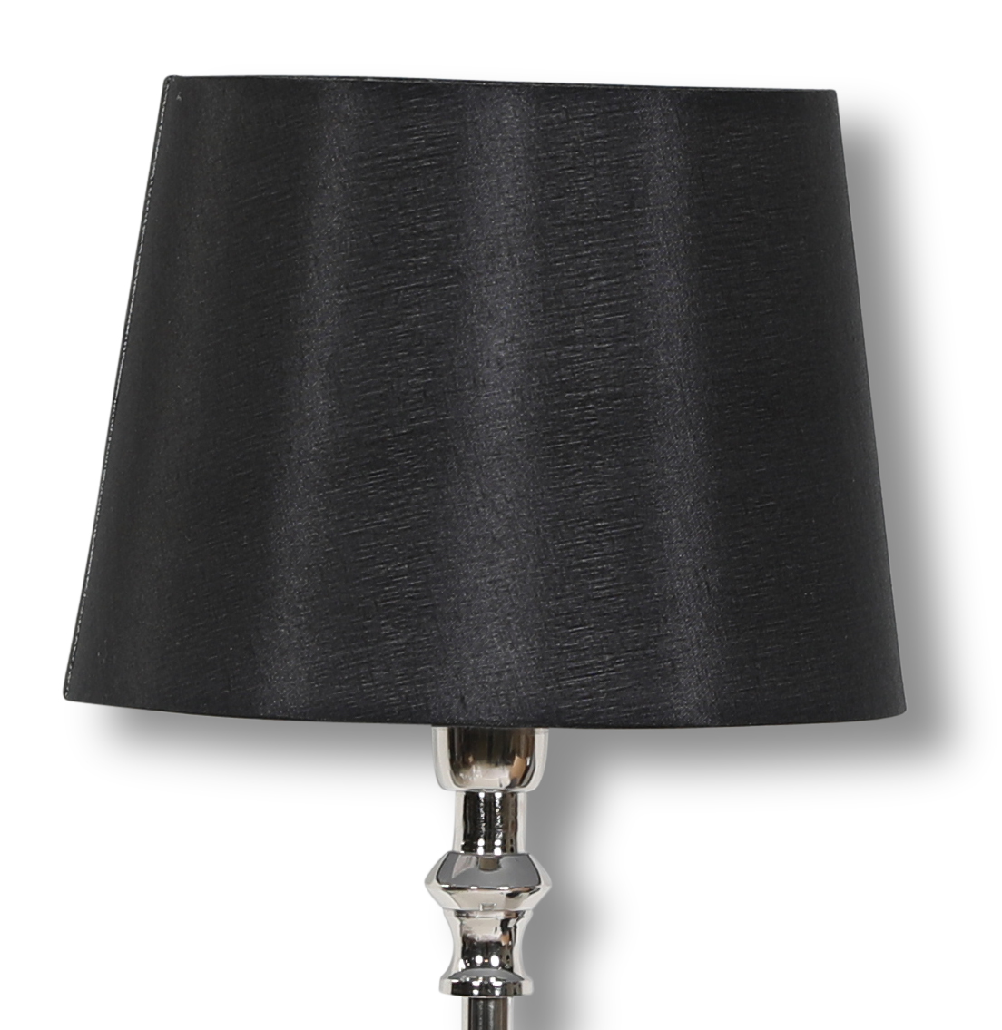 Lampskärm av sidenliknande tyg. Medföljande distansbricka gör det möjligt att använda lampskärmen till både E14- och E27-glödlampor. Glödlampa och lampfot ingår ej.