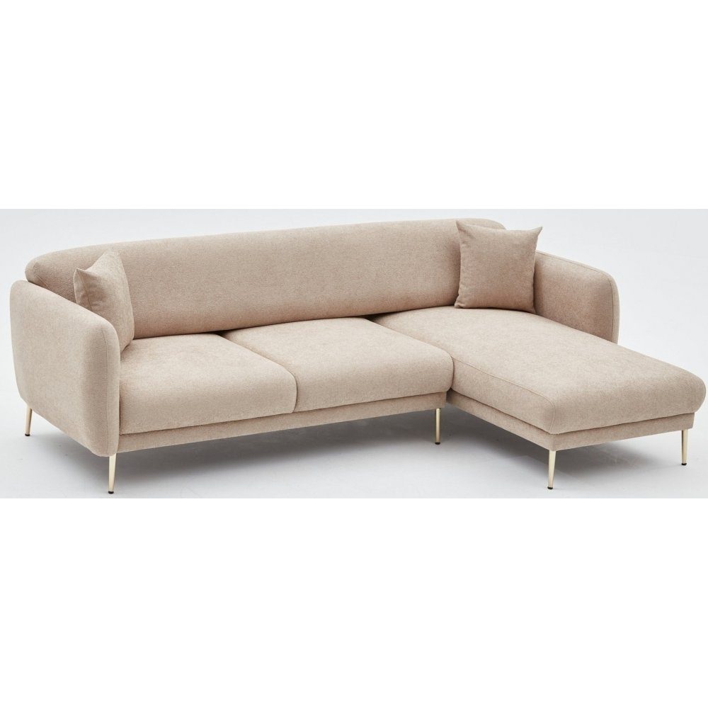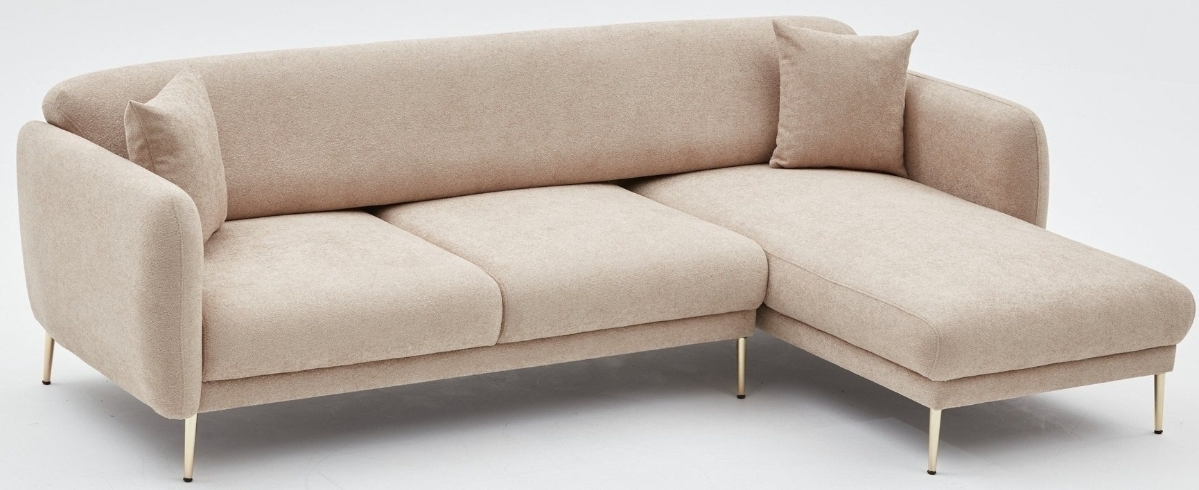 Soffa av bokträ med ben av metall och klädsel av polyester.
