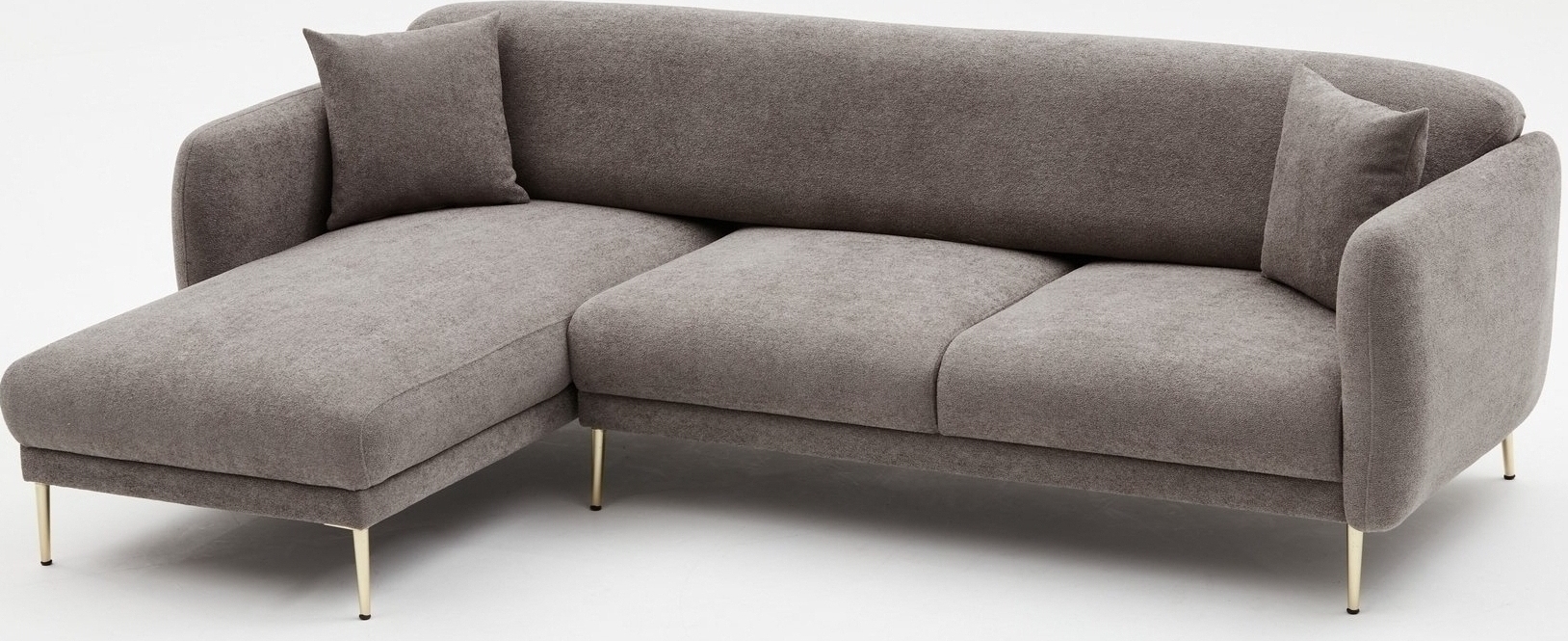Soffa av bokträ med ben av metall och klädsel av polyester.