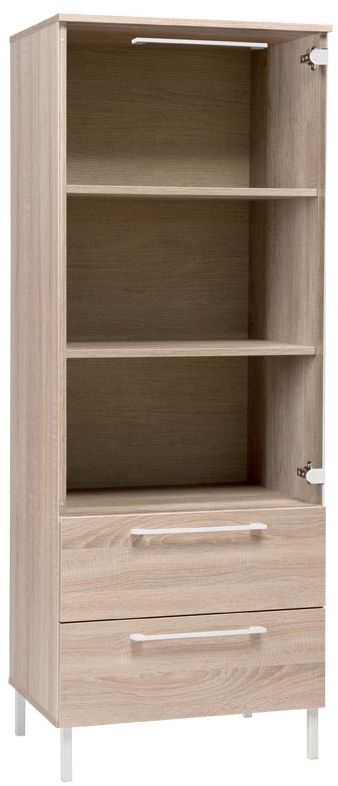 Elegant vitrinskåp med modern design. Passar in i flera olika rum i hemmet tack vare dem olika färgvalen, så du kan anpassa möblen efter ditt hem och smak. Perfekt att visa upp sina prydnadssaker med då skåpet är rustat med en skåpsdörr i klarglas och flera hyllplan, där är även två lådor för praktisk förvaring av exempelvis dukar.
