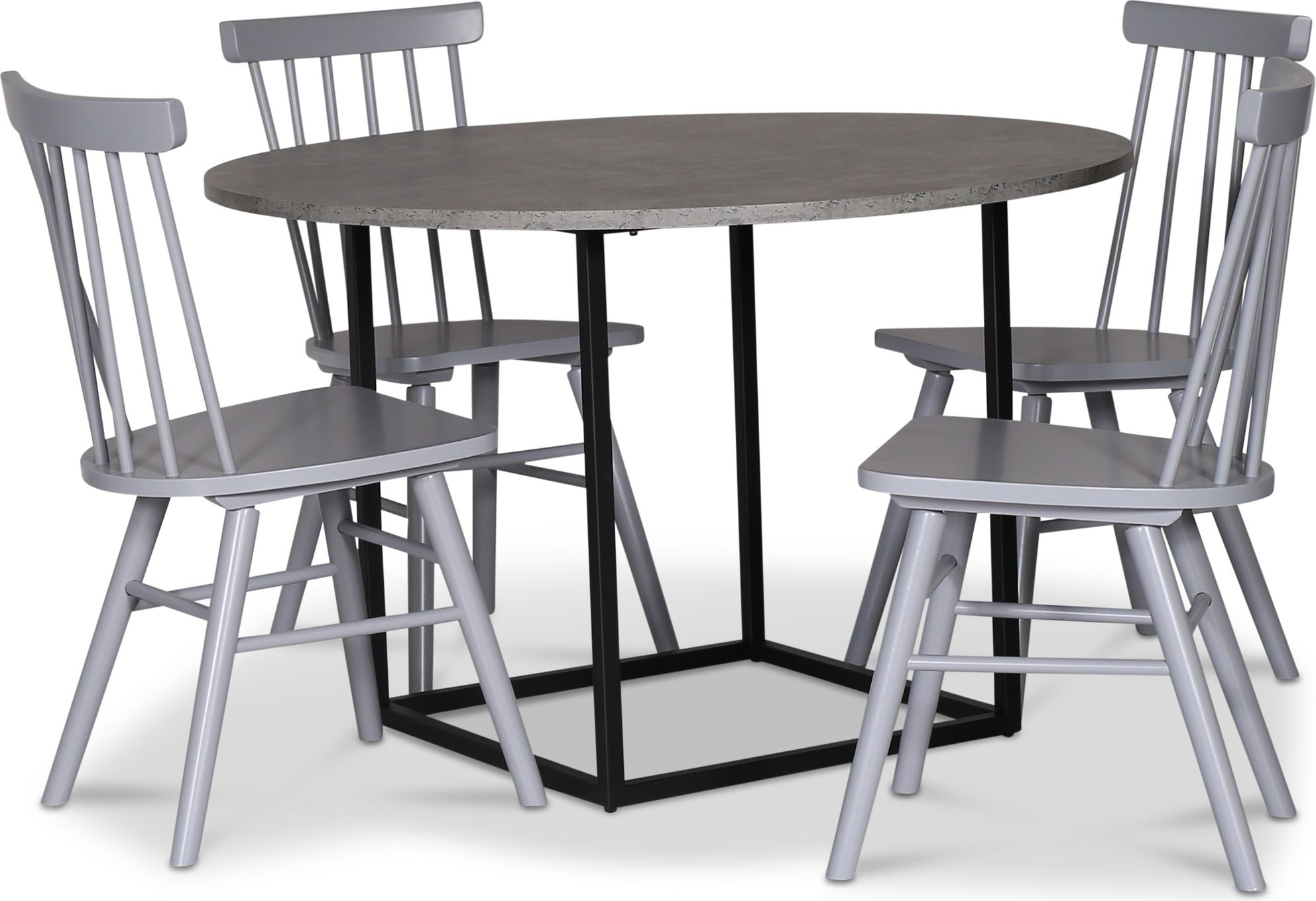 Sintorp matgrupp, runt matbord Ø115 cm inkl 4 st Orust pinnstolar - Betong (Laminat):