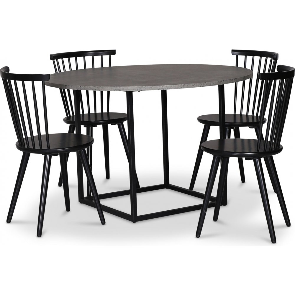 Sintorp matgrupp, runt matbord Ø115 cm inkl 4 st pinnstolar Castor - Betong (Laminat)