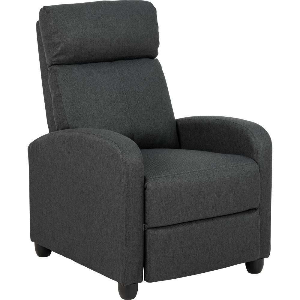 Reclinerfåtölj med klädsel av tyg och stomme av polypropylen. Pocketfjädrar i sitsen. Push back mekanism.