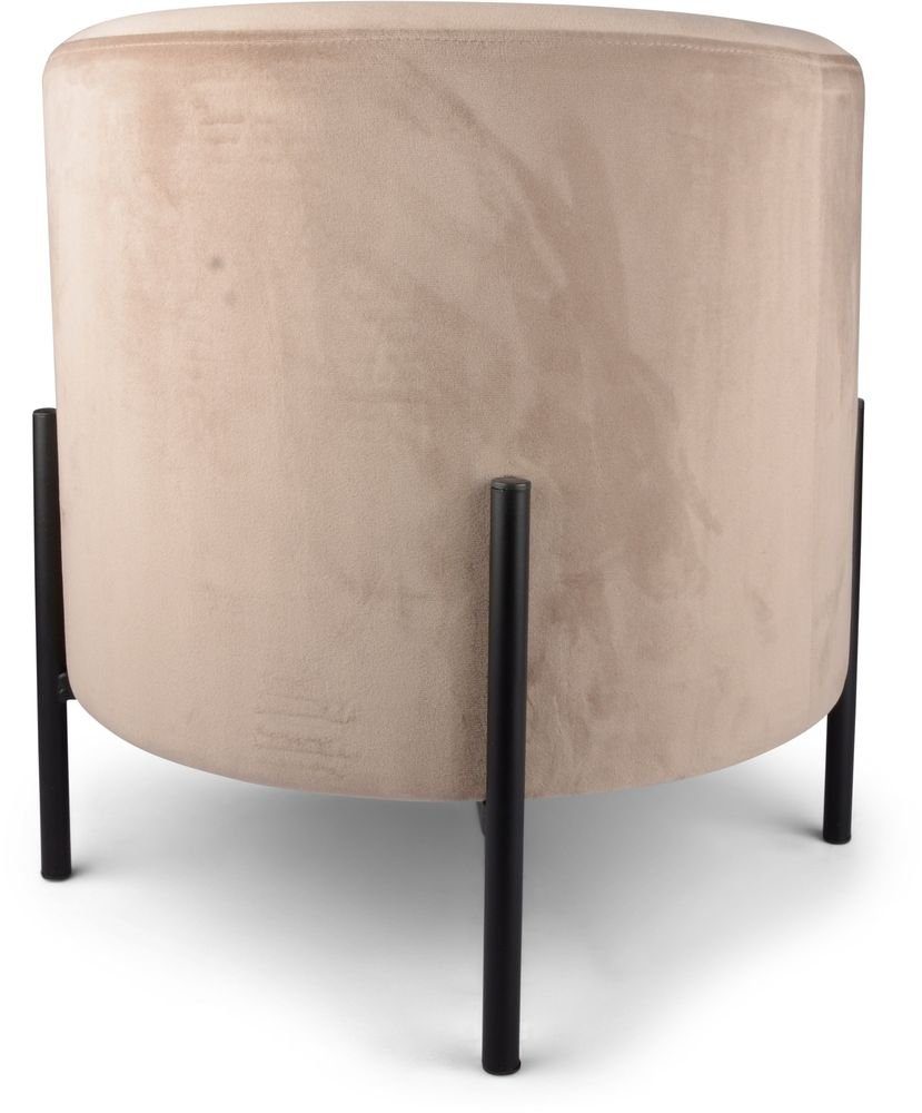 En mysig och elegant sittpuff med svart metall underrede och klädd med mycket behagligt sammet tyg.