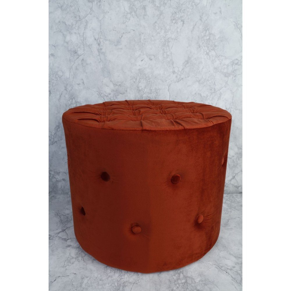 Sittpuff i ett snyggt rostrött sammet och knappar som en snygg detalj.