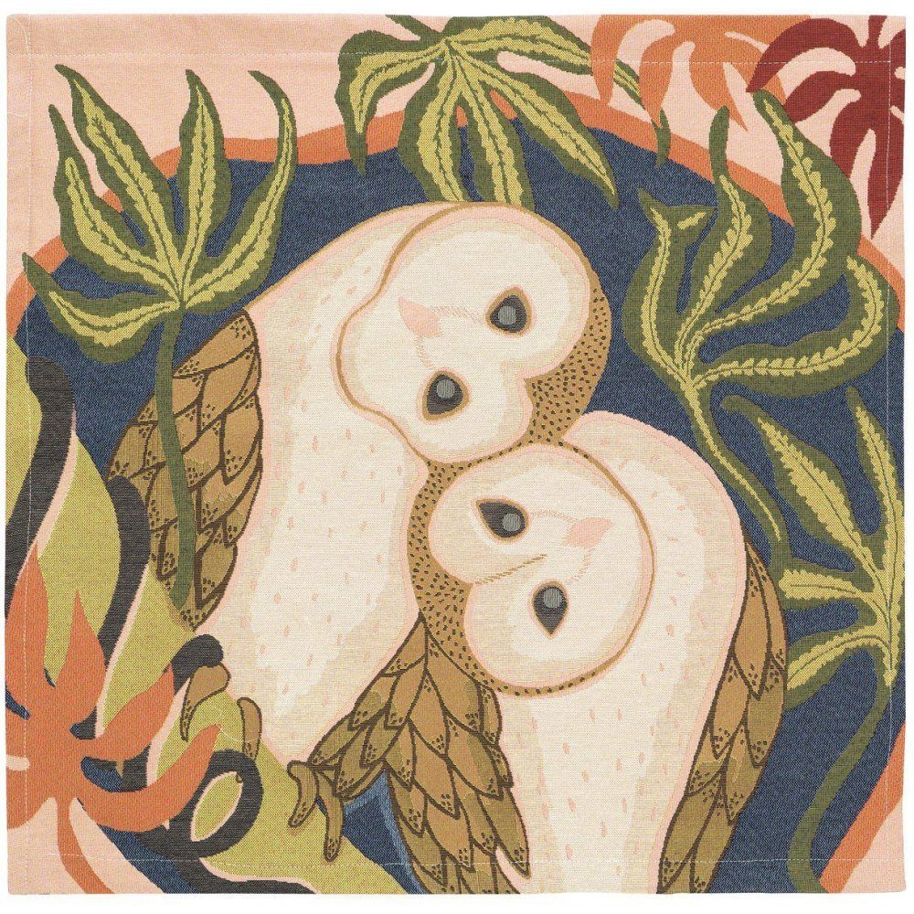 Jacquardvävd väggbonad av designer Parvathy Balasubraman. Mått 66x66cm. 5cm bred kanal i ovankant och nederkant för en enkel upphägning. Fållade långsidor.