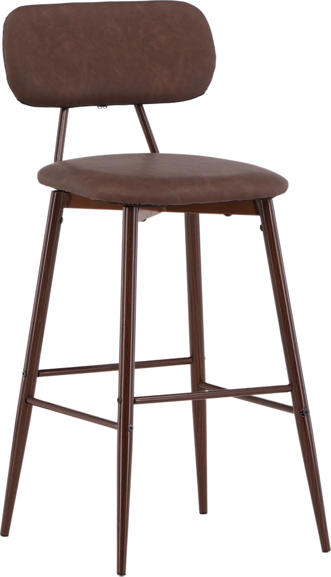 Barstol som kombinerar hög komfort med klassisk design och passar utmärkt likväl vid bardisken som kring det högre matbordet. Sitsen är i läcker PU-klädsel och benen har integrerat fotstöd i trä. Den genomgående jordnära bruna kulören ger ett likväl nostalgiskt som modernt intryck och är enkel att matcha med övrig inredning.
