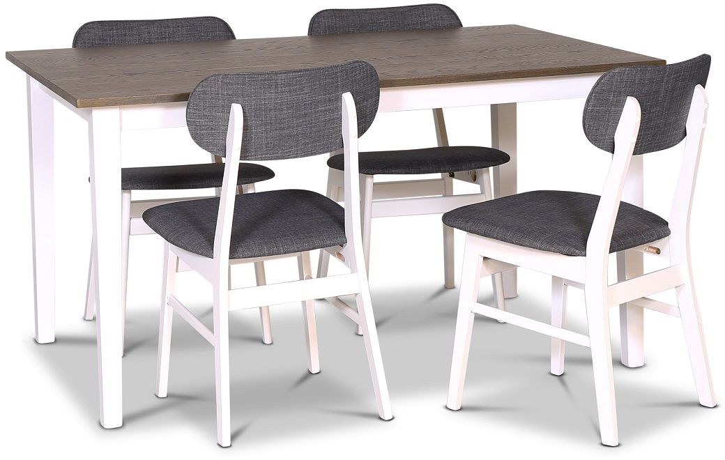 Skagen matgrupp 140x90 cm inkl. 4 st Sarek grå matstolar - Brunoljad ek / Vit