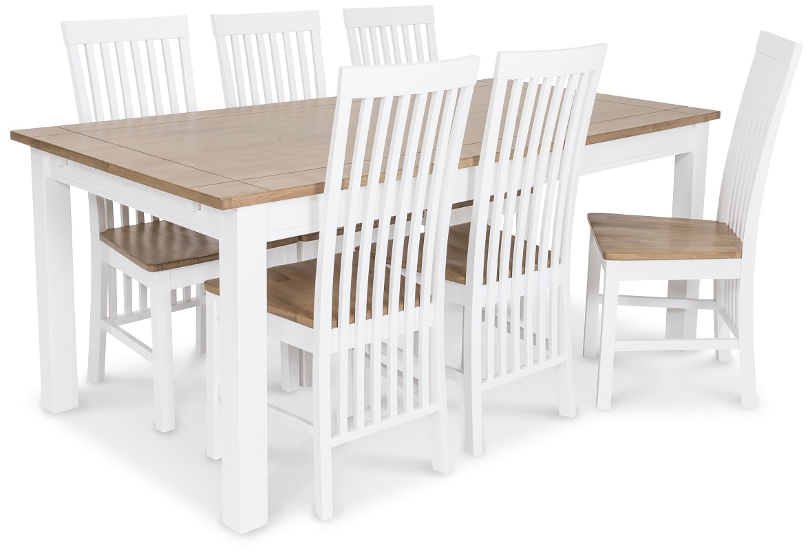 Skagen matgrupp - 180 cm Bord inklusive 6 st Herrgård Vindö stolar med sits i ekbets - Vit/Ekbets