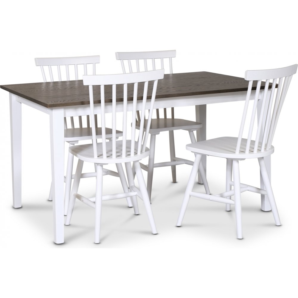 Skagen matgrupp; klassiskt matbord 140x90 cm - Vit / brunoljad ek med 4 st vita Karl pinnstolar
