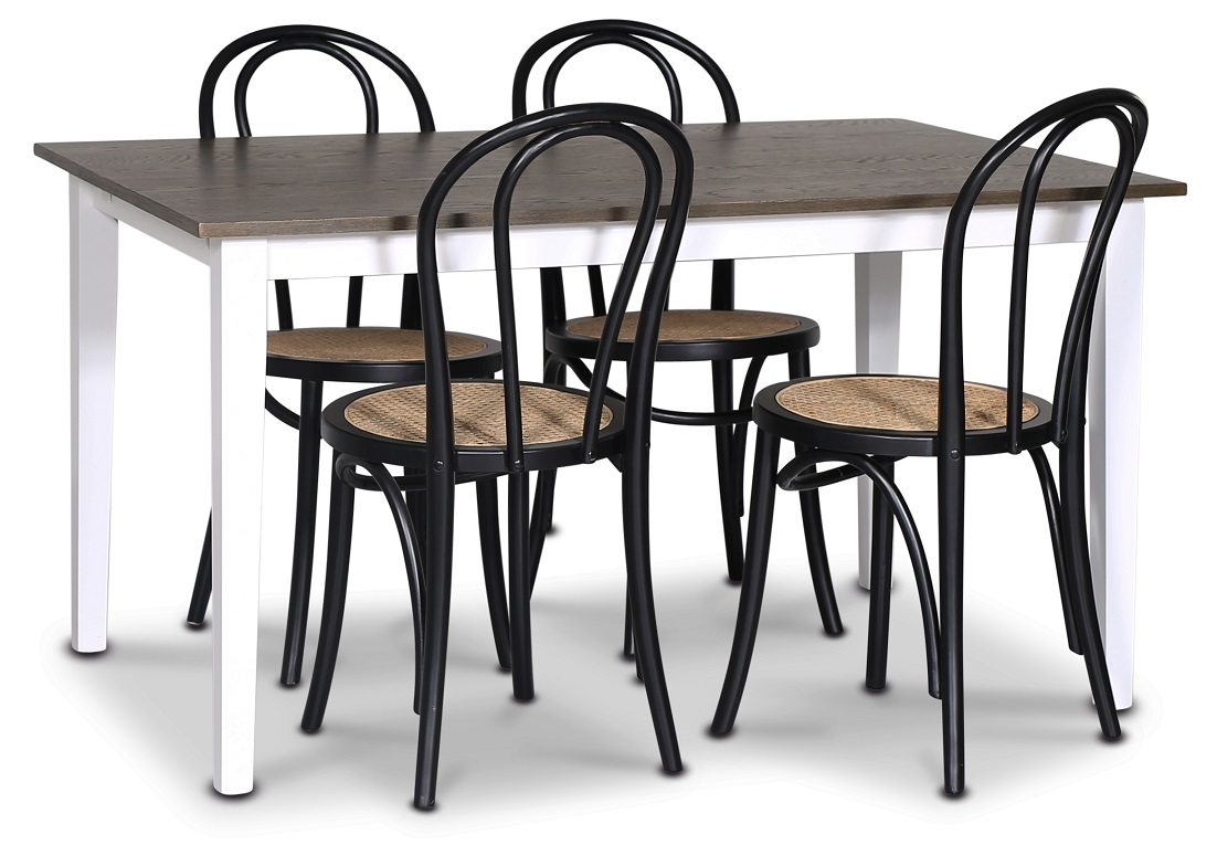 Skagen matgrupp; matbord 140 cm - Vit / brunbetsad ek med 4 st Danderyd No.18 matstolar Svart