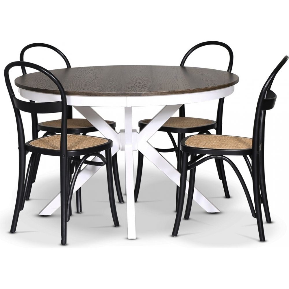 Skagen matgrupp; runt matbord 120 cm - Vit / brunbetsad ek med 4 st Danderyd No.16 stolar Svart: