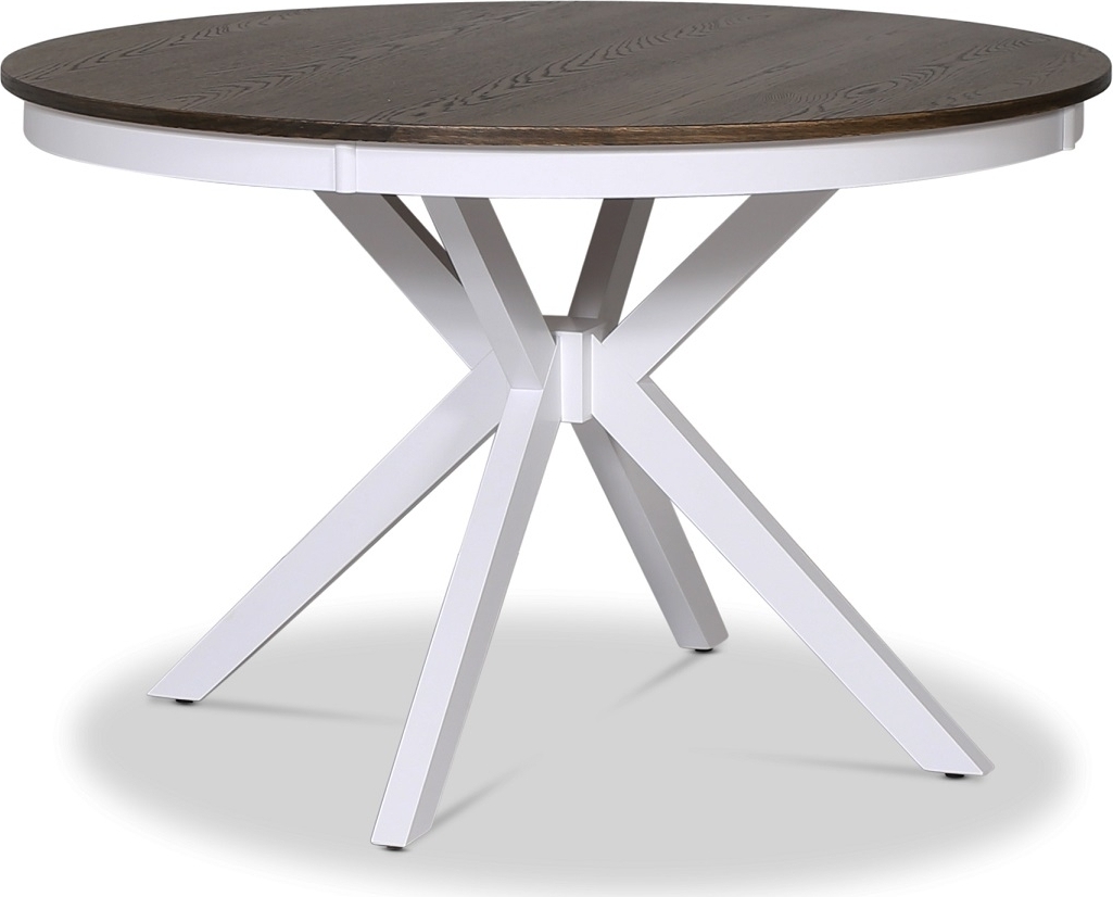 Skagen matgrupp; runt matbord 120 cm - Vit / brunbetsad ek med 4 st Danderyd No.30 stolar Svarta