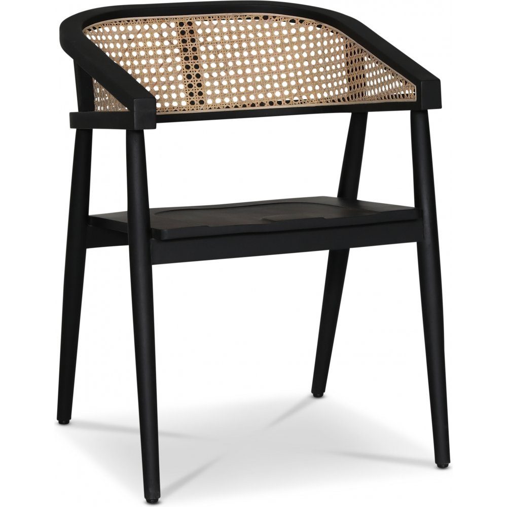 Karmstol med stomme av exklsuiv mahogny i svart, ryggstöd av naturfärgad rotting. Svart träsits, kombinera gärna med en sittdyna.