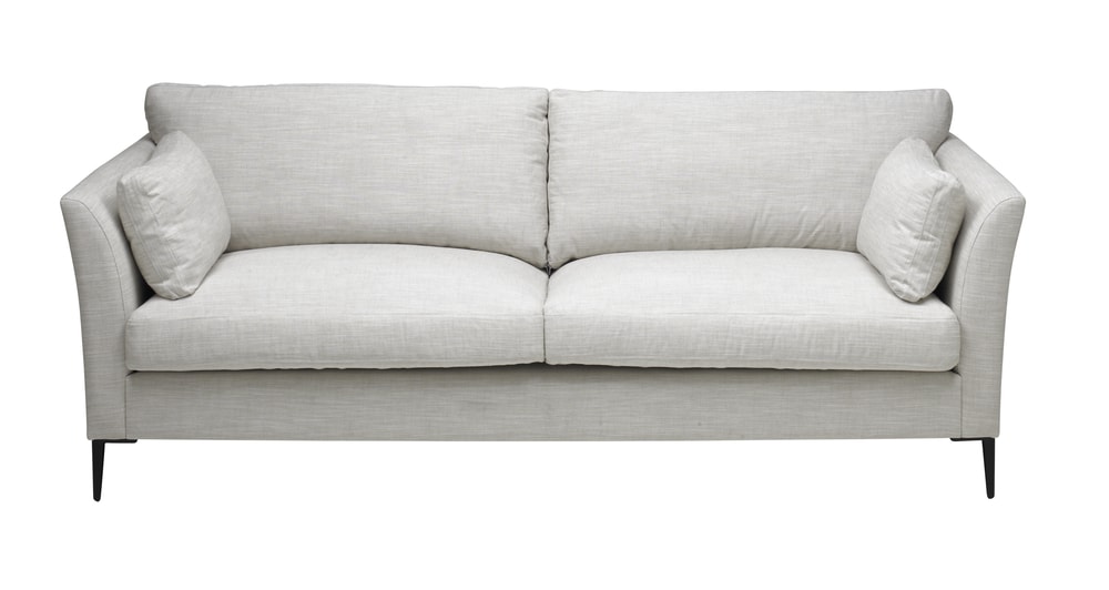 Modern elegant soffa i valbar möbelklädsel. Nätta ben i svart metall. Välj bland ett rikt urval av möbelklädslar för att hitta någon som passar in i ditt hem. Kallskumkärna med duntopp och nosagfjädring för en mjuk och skön komfort.