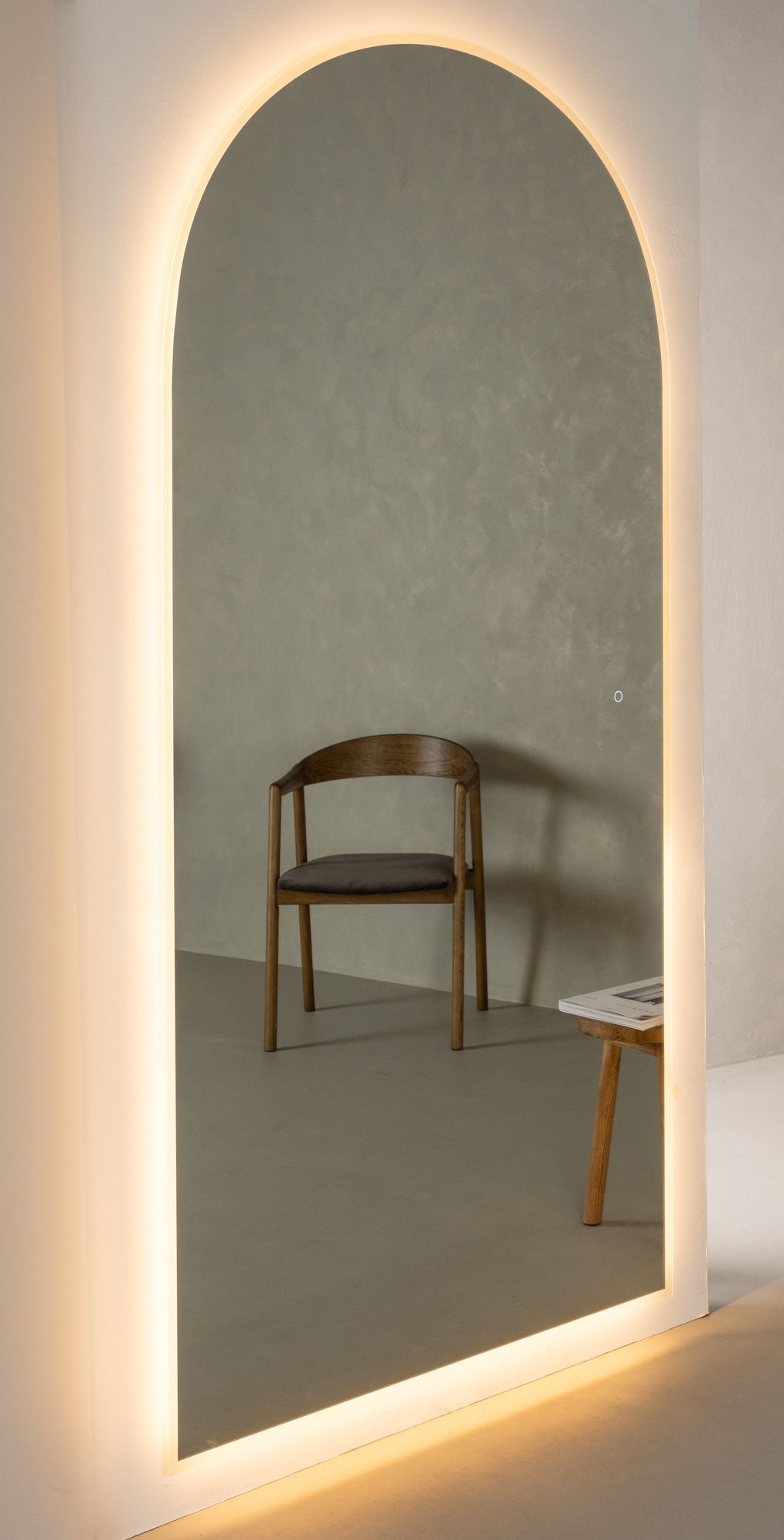 Med Skeppsvik från Josefin Lustig kollektionen får du en spegel med vacker belysning på köpet. Med denna spegel kan du vara säker på att vara helt i linje med trenderna, med den rundade formen upptill och generösa storleken. Led-lamporna bakom ger ett vackert ljus, vilket gör spegeln både praktisk och dekorativ. Placera i sovrummet eller i hallen och njut av ett behagligt sken.