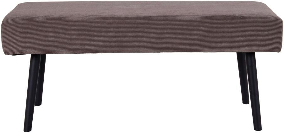 Bänk i grå sammet med svarta ben.